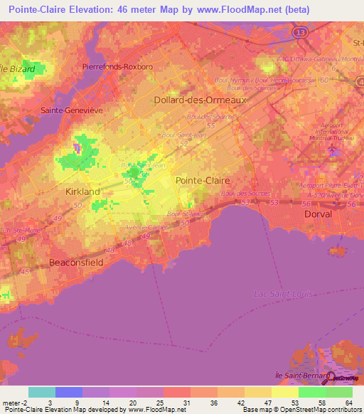 Elevation of Pointe Claire,Canada Elevation Map, Topography, Contour